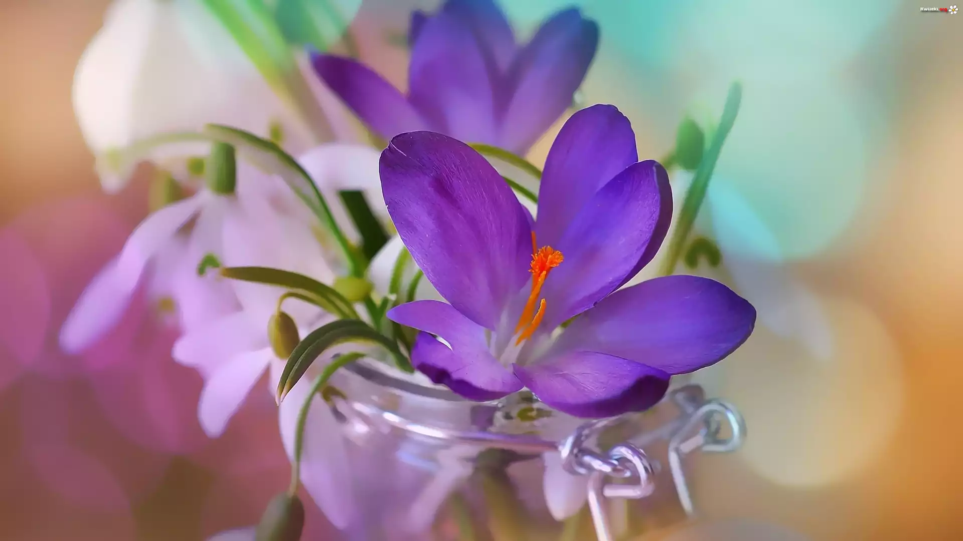 Kwiat Bukiet, Kwiaty, Krokusy, Przebiśniegi, Słoik