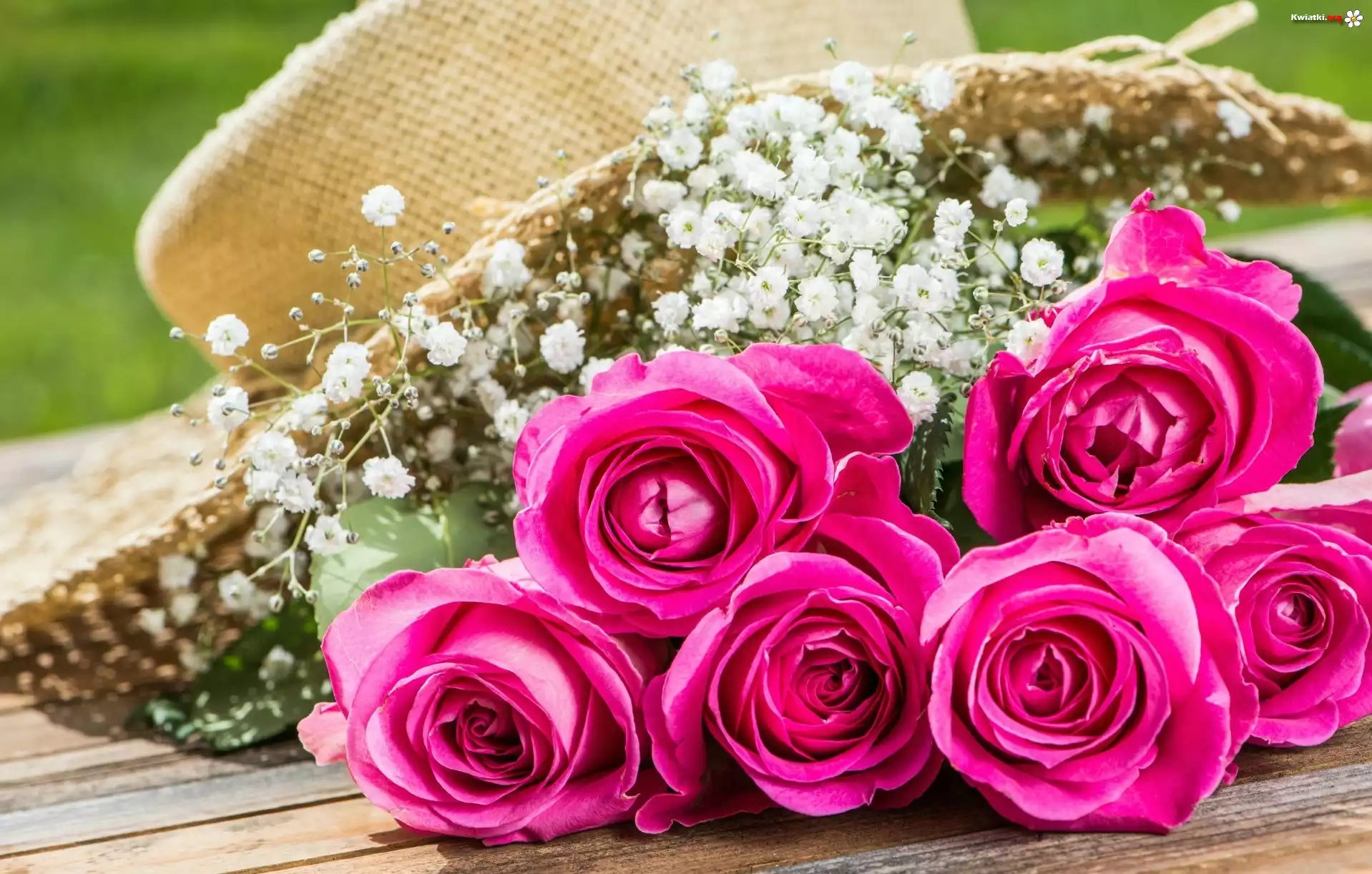 Kwiat Bukiet, Różowych, Róż, Kapelusz