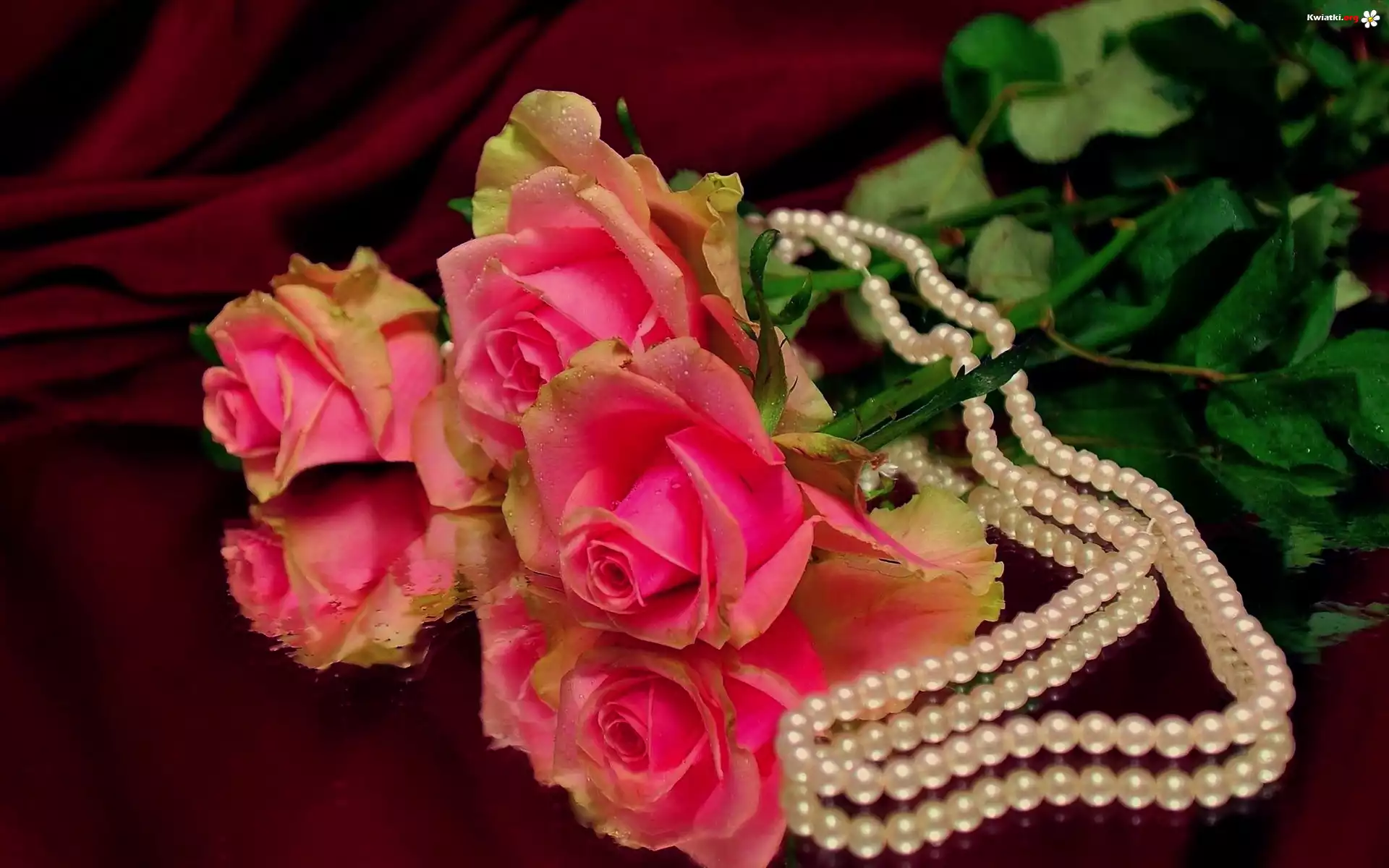 Bukiet, Różowych, Róż, Korale - Zdjęcia