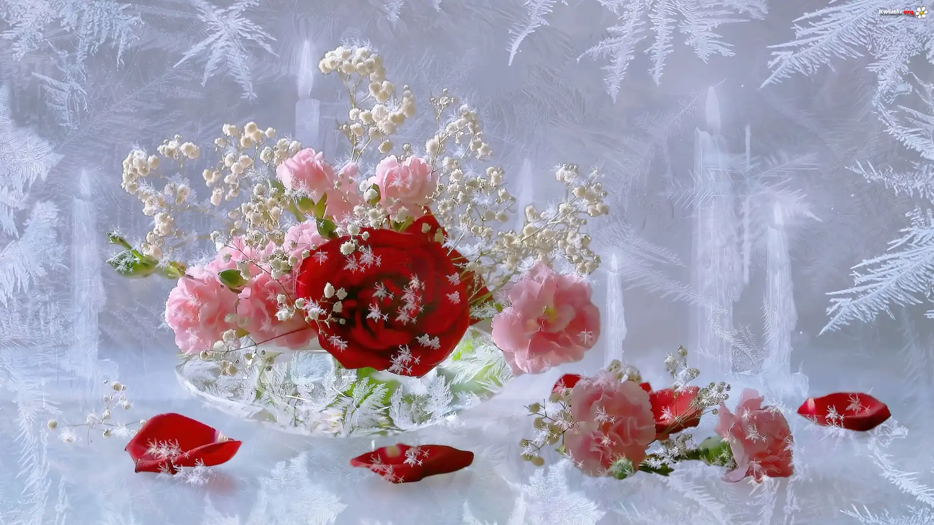 Kwiat Bukiet, Kwiatów, Szyba, Mróz
