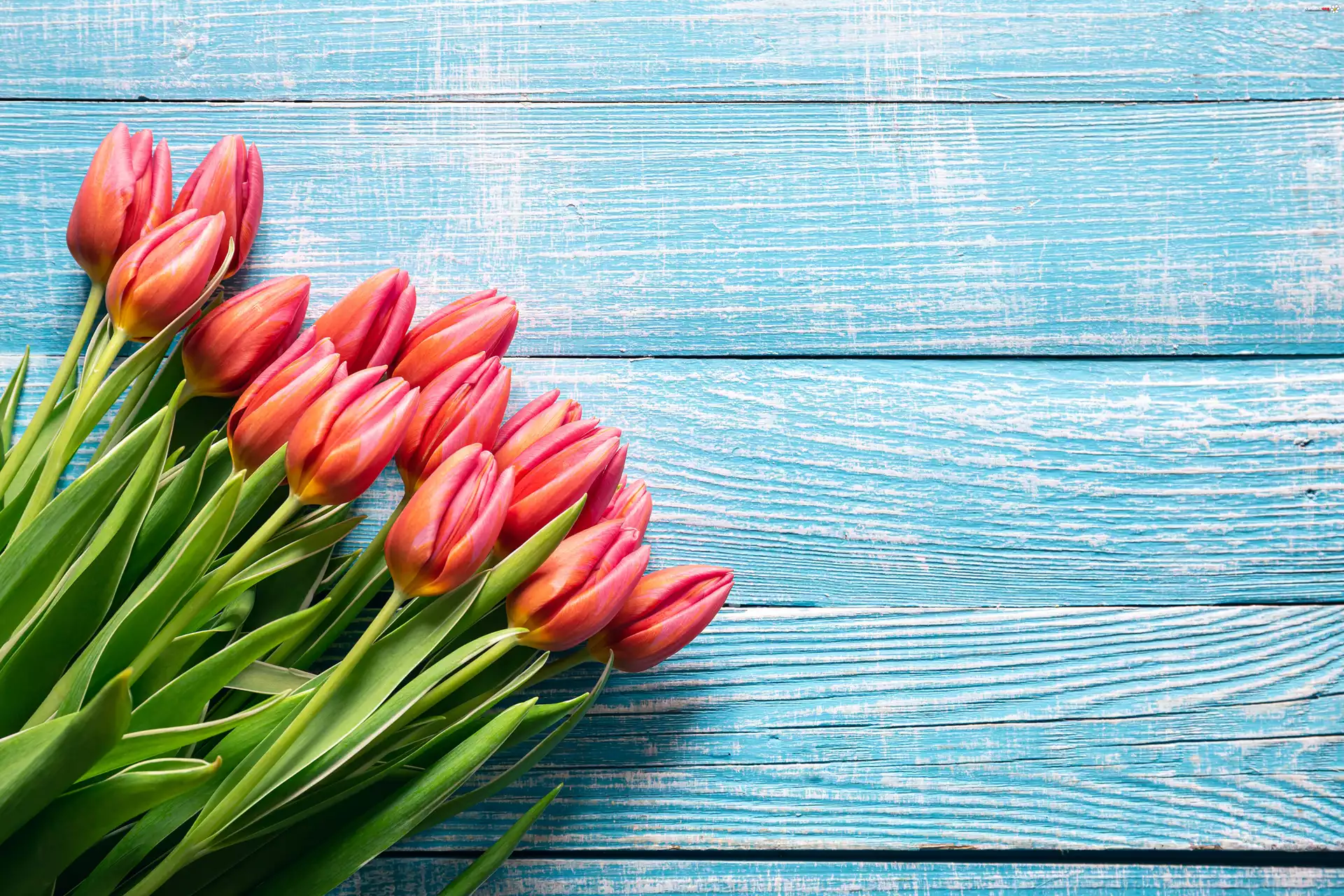 Kwiat Kwiaty, Bukiet, Tulipany, Deski, Niebieskie
