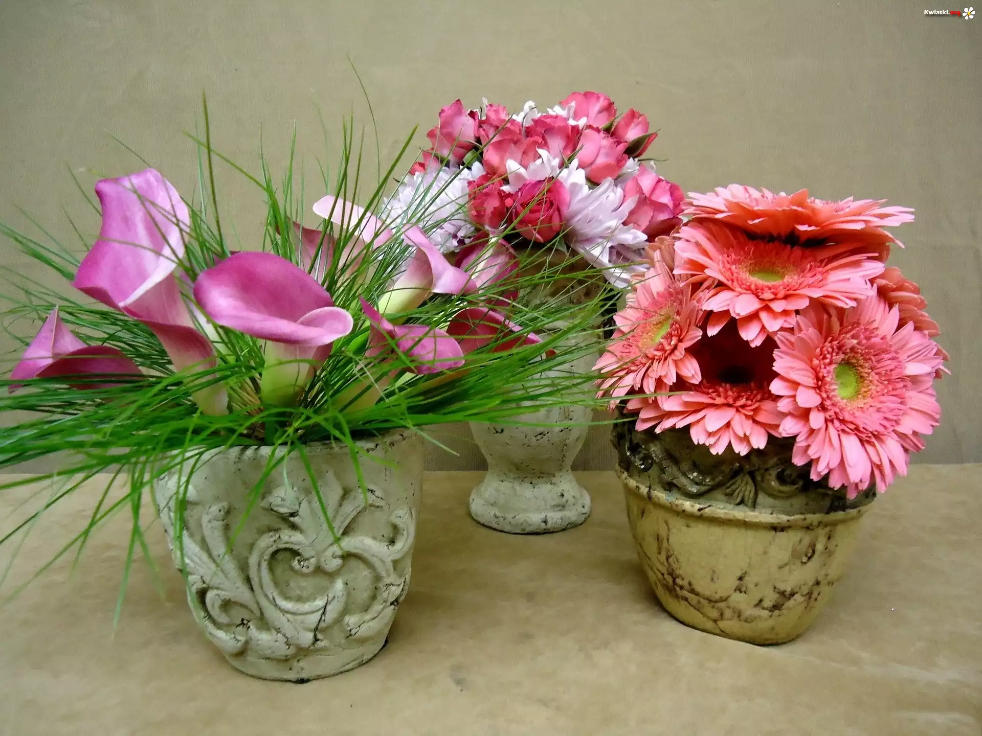 Bukiety, Kwiatów, Gerbery, Kalie, Róże - Zdjęcia
