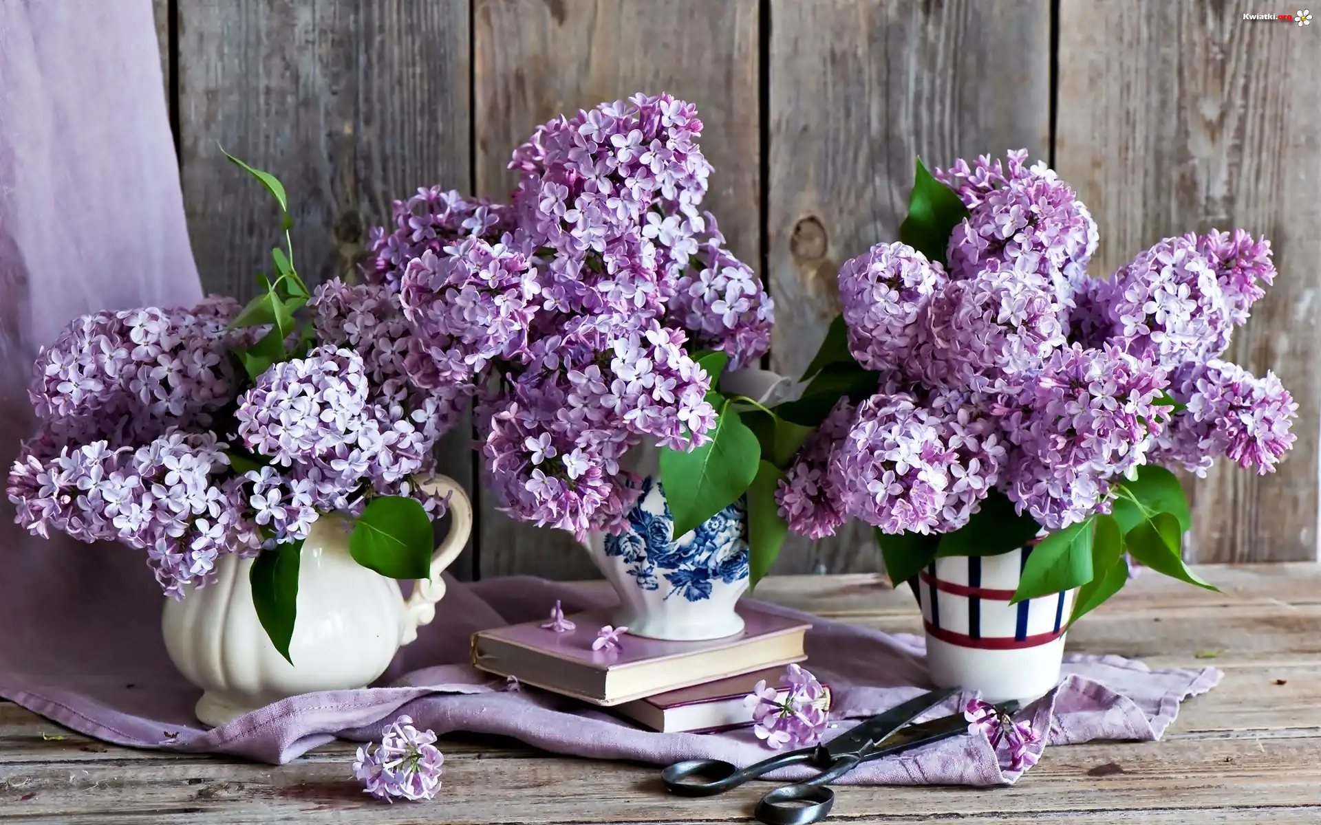 Bukiety, Kwiatów, Bzy, Książki, Nożyce - Zdjęcia