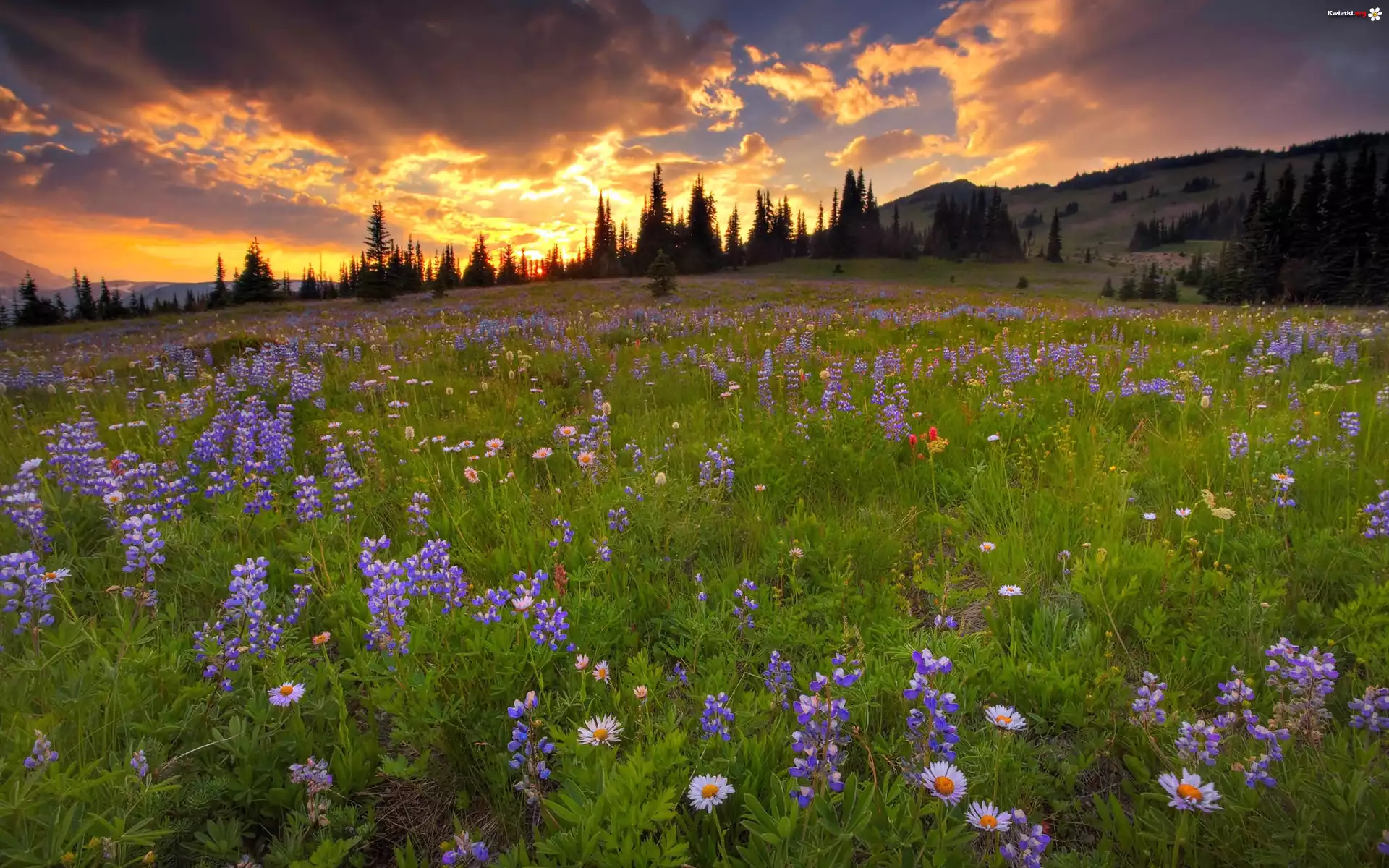 Kwiat Ciemne, Chmury, Las, Wiosenna, Łąka