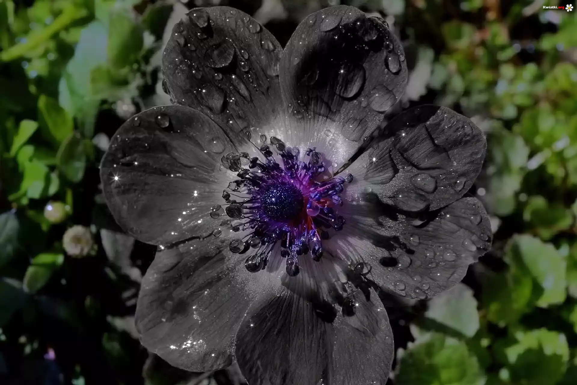 Czarny, Kwiat, Krople, Wody - Zdjęcia