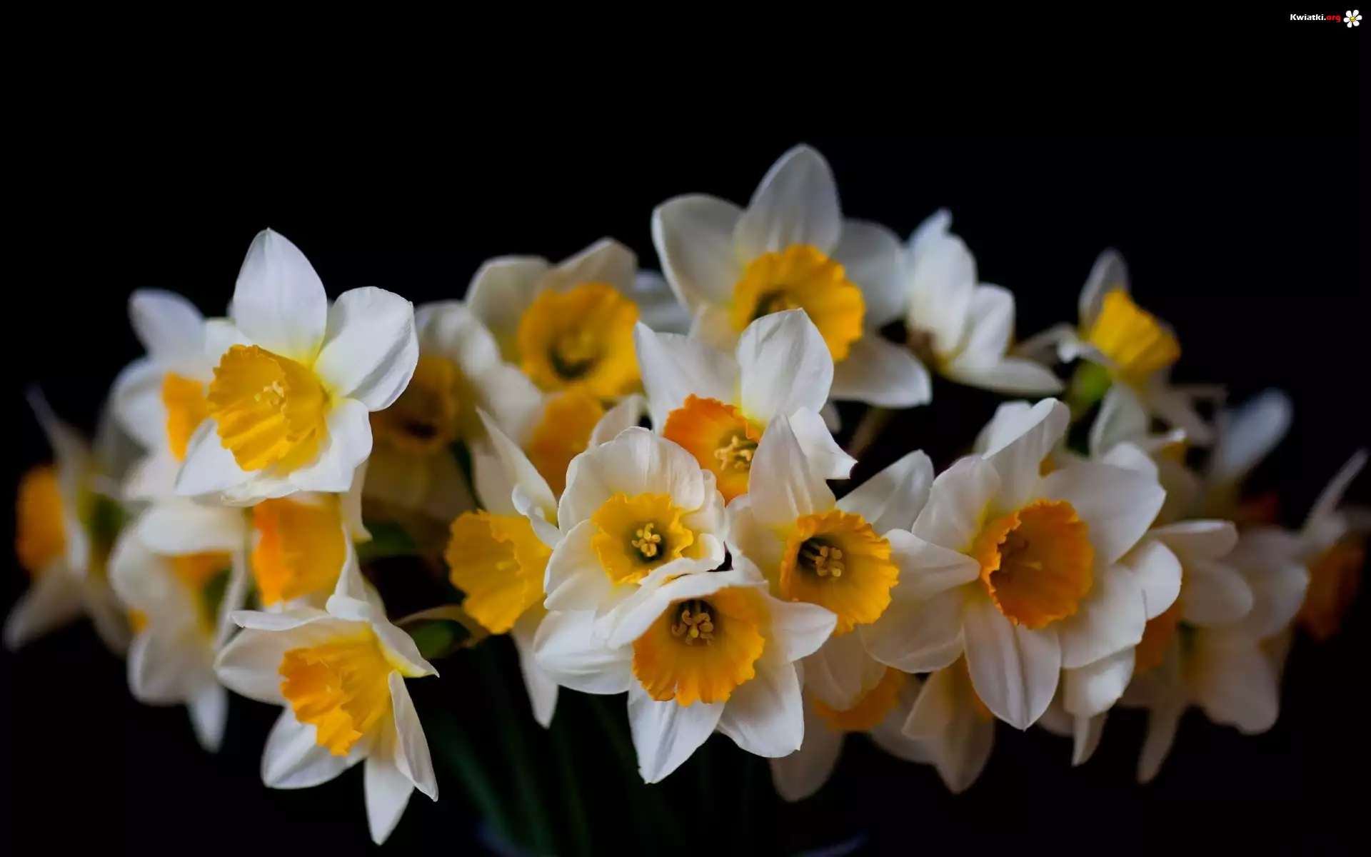 Kwiat Żonkile, Bukiet, Na, Czarnym, Tle