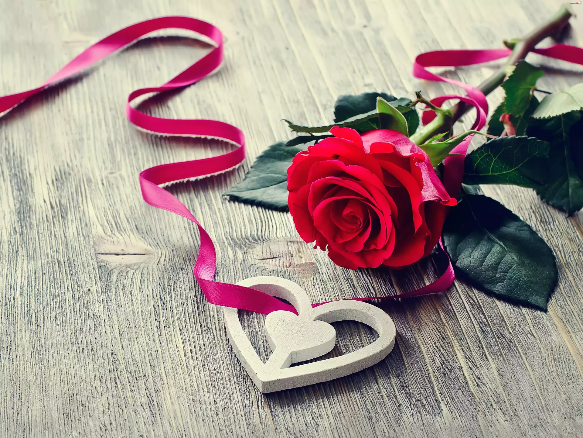 Kwiat Czerwona, Róża, Serce, Wstążka