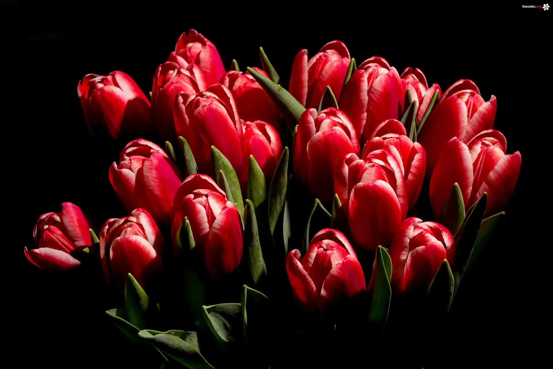 Czerwone, Tulipany, Czarne tło - Zdjęcia