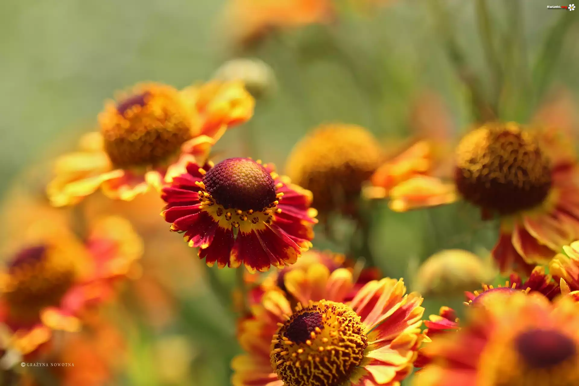 Kwiaty, Czerwone, Żółte, Dzielżan - Zdjęcia