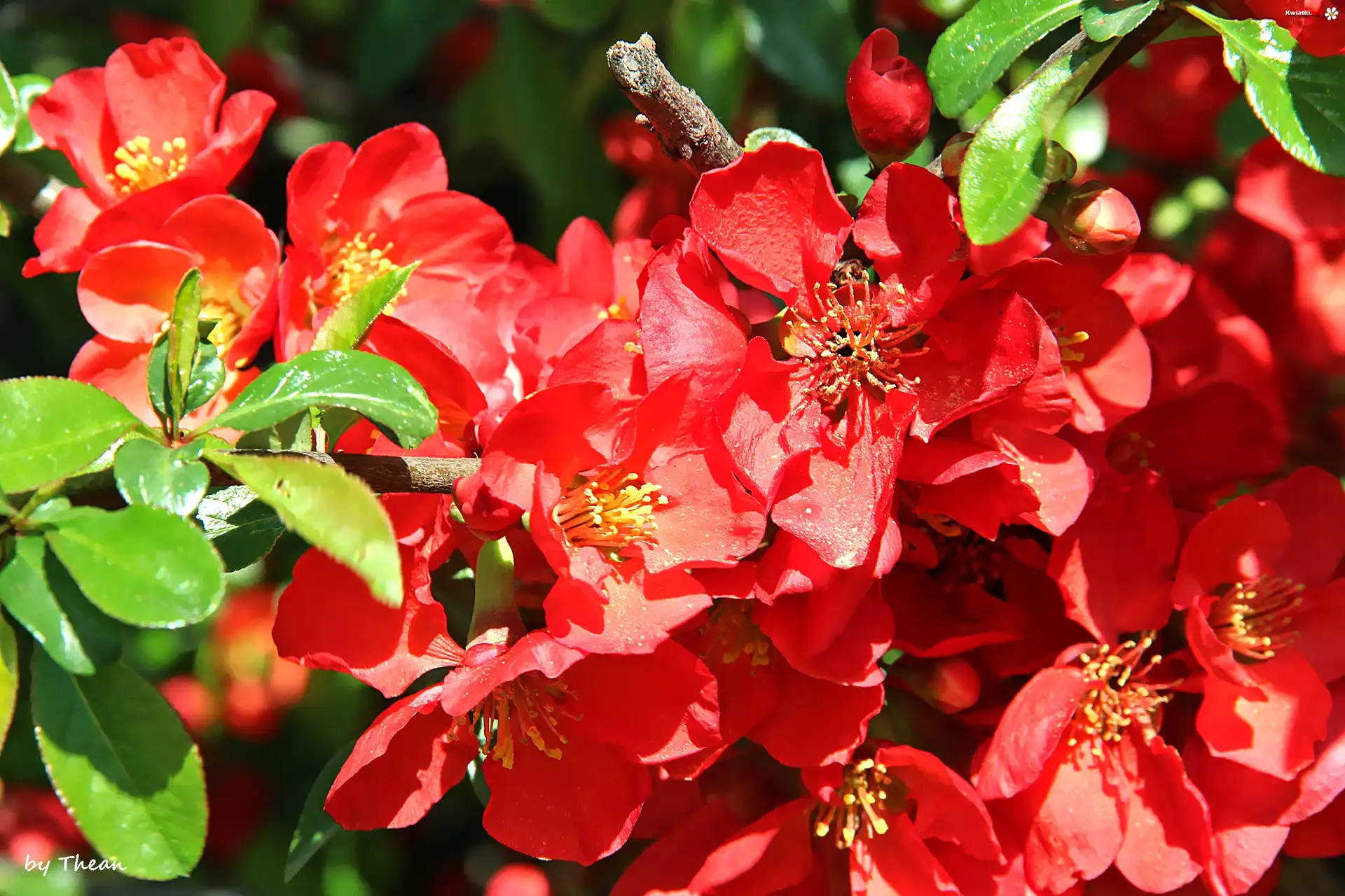 Czerwone, Kwiaty, Kwitnąca, Pigwa - Zdjęcia