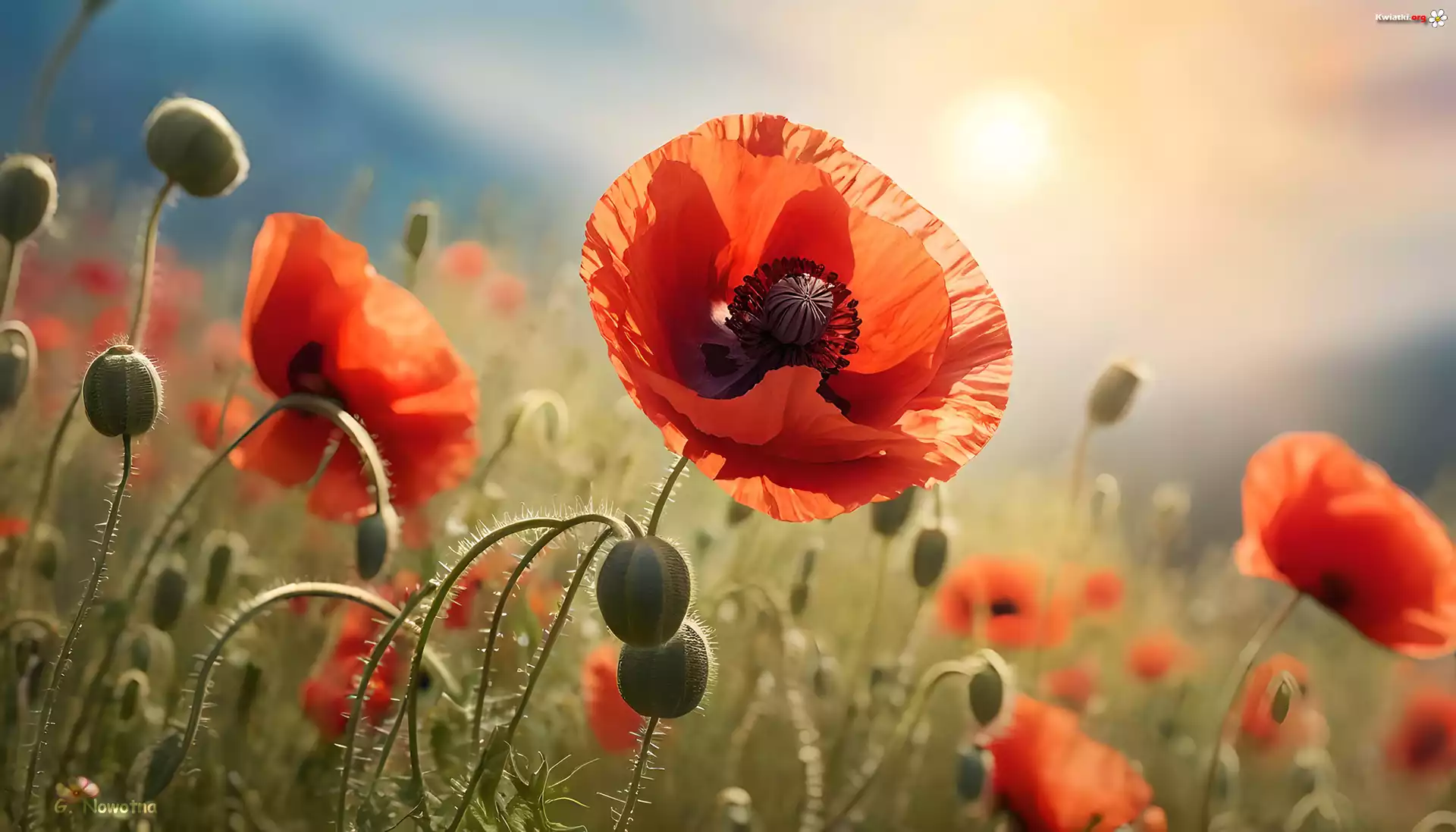 Grafika, Czerwone, Maki, Kwiaty, Pąki - Zdjęcia