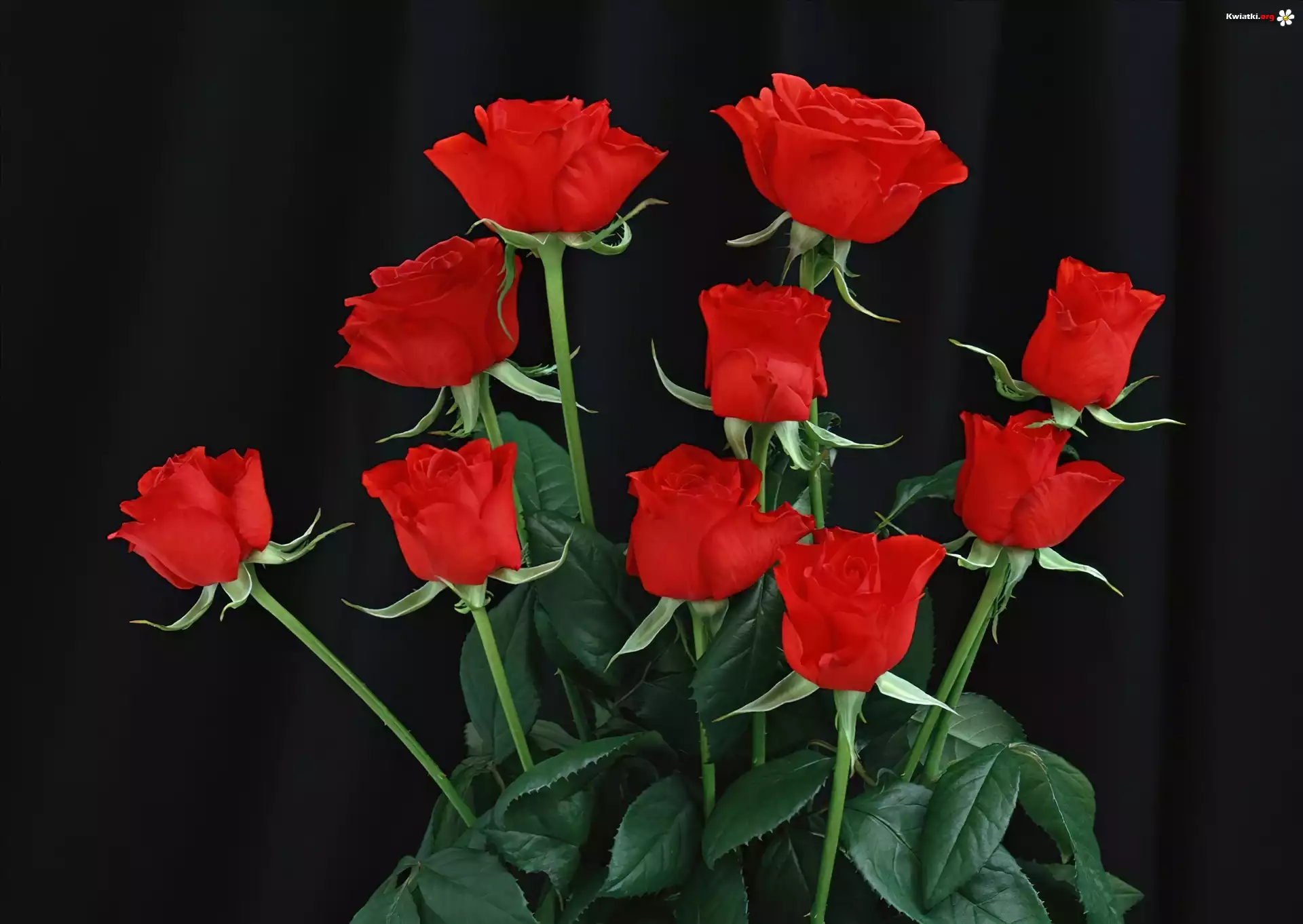 Czerwone, Róże, Łodygi, Liście - Zdjęcia
