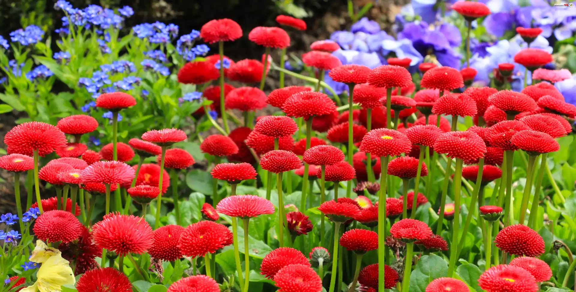 Czerwone, Stokrotki, Zbliżenie - Zdjęcia
