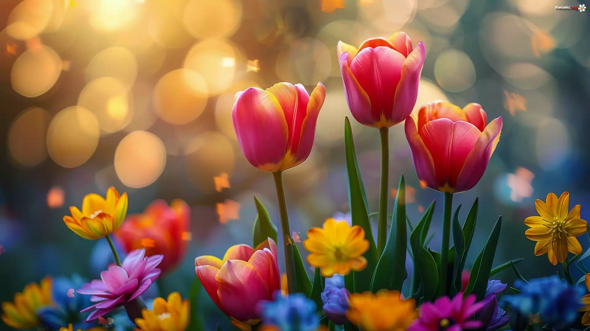 Kwiat Kwiaty, Czerwono-żółte, Tulipany, Bokeh
