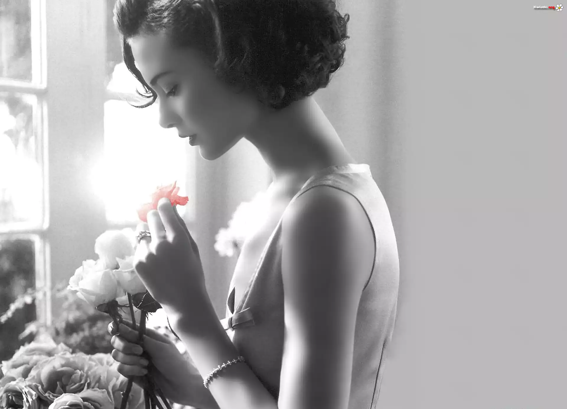 Kobieta, Czerwony, Kwiatek - Zdjęcia
