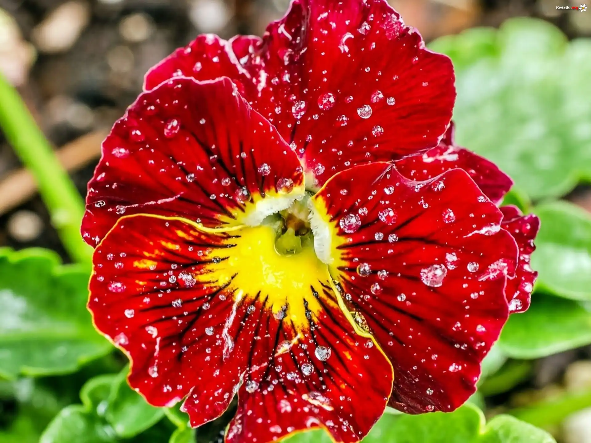 Czerwony, Bratek, Krople, Wody - Zdjęcia