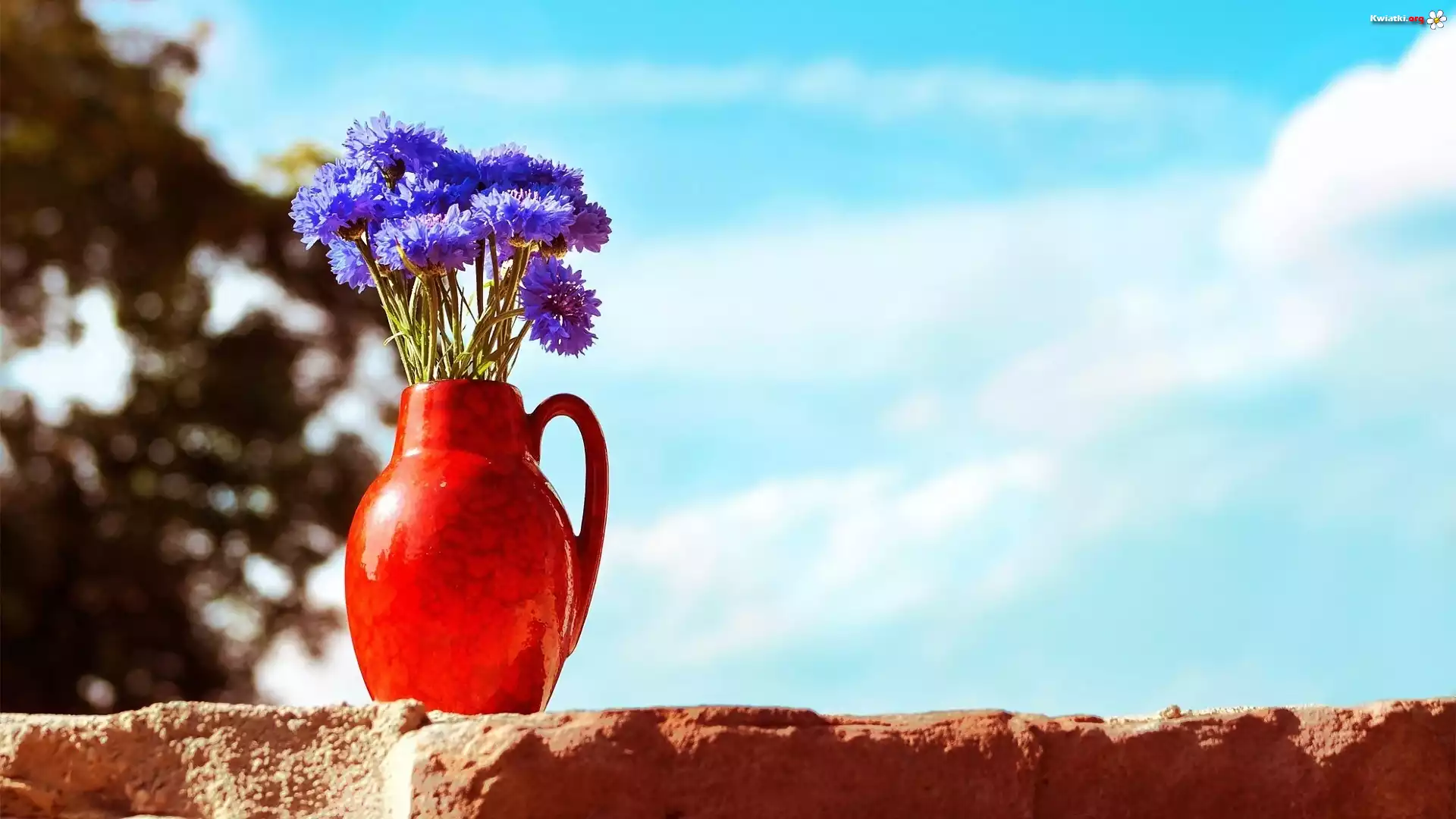 Czerwony, Wazon, Kwiaty, Chabry - Zdjęcia