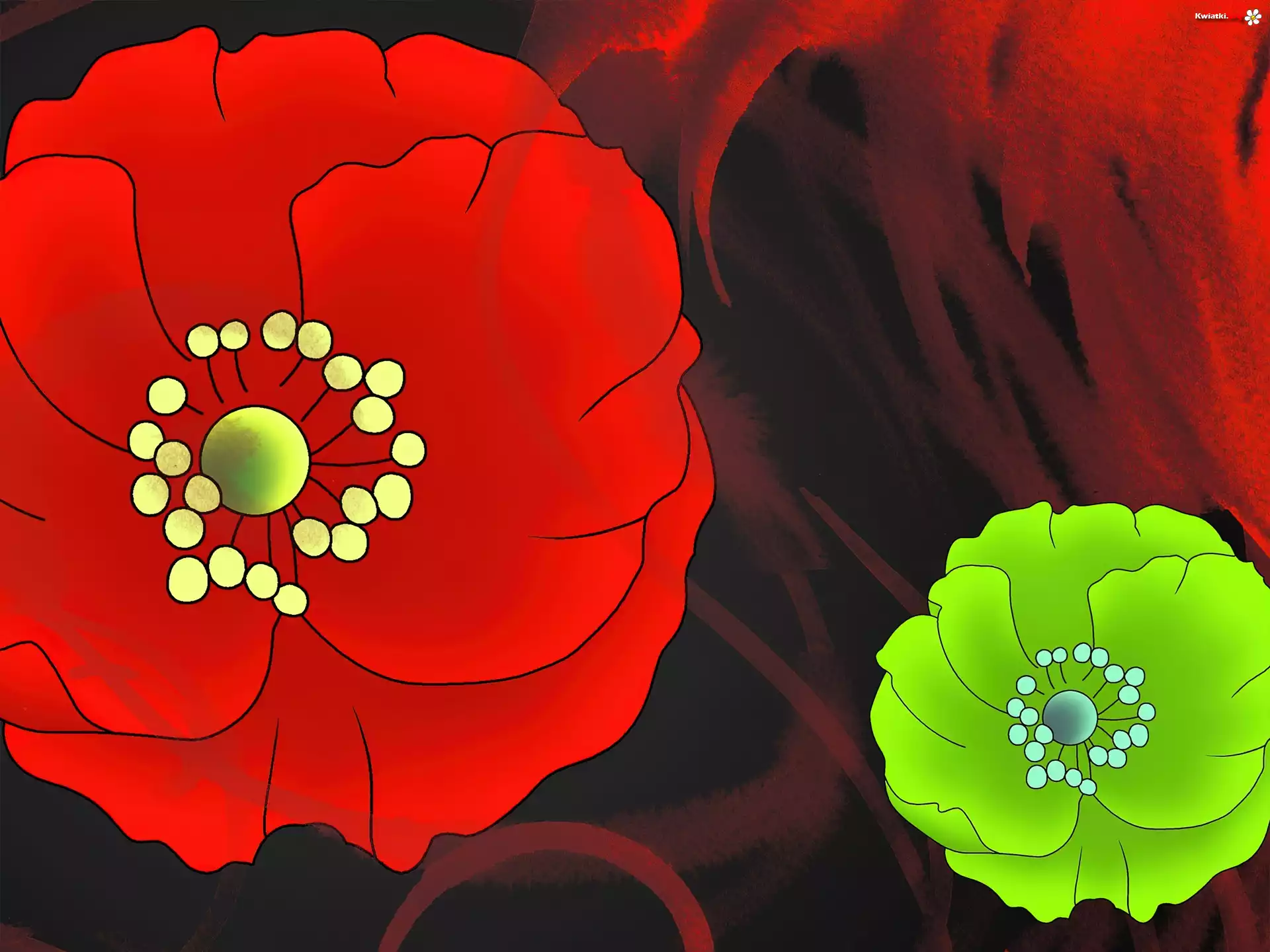 Czerwony, Zielony, Kwiat, Maki, Tekstura - Zdjęcia