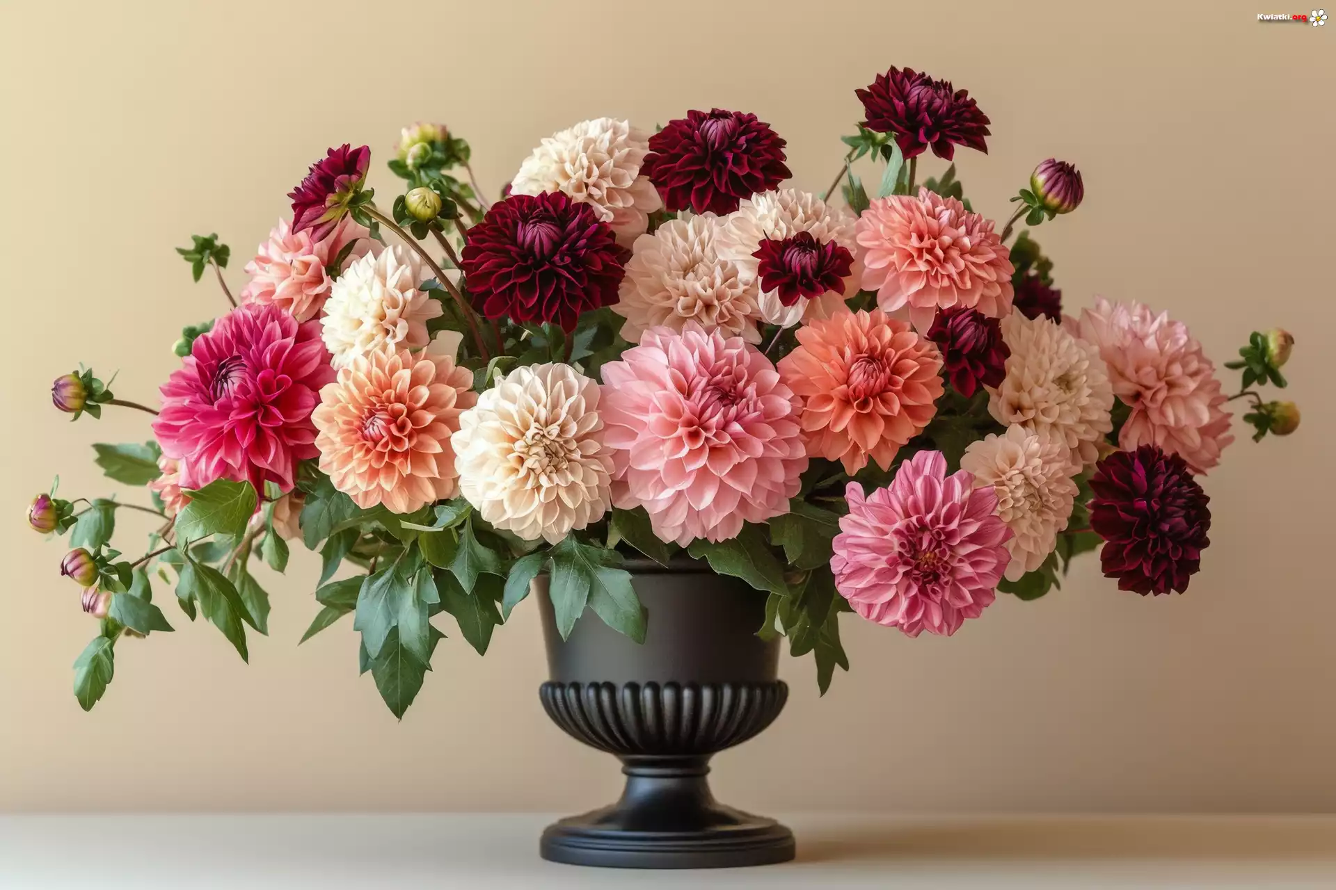 Kwiaty, Dalie, Kolorowe, Bukiet, Waza - Zdjęcia