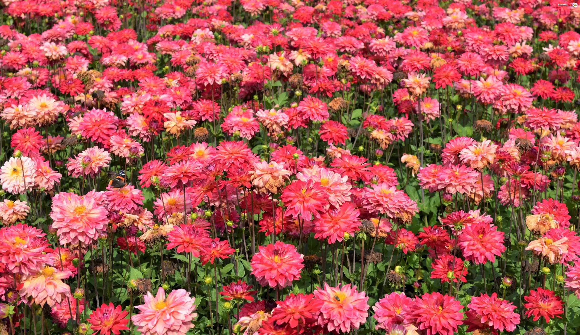 Kwiaty, Dalie, Motyl - Zdjęcia