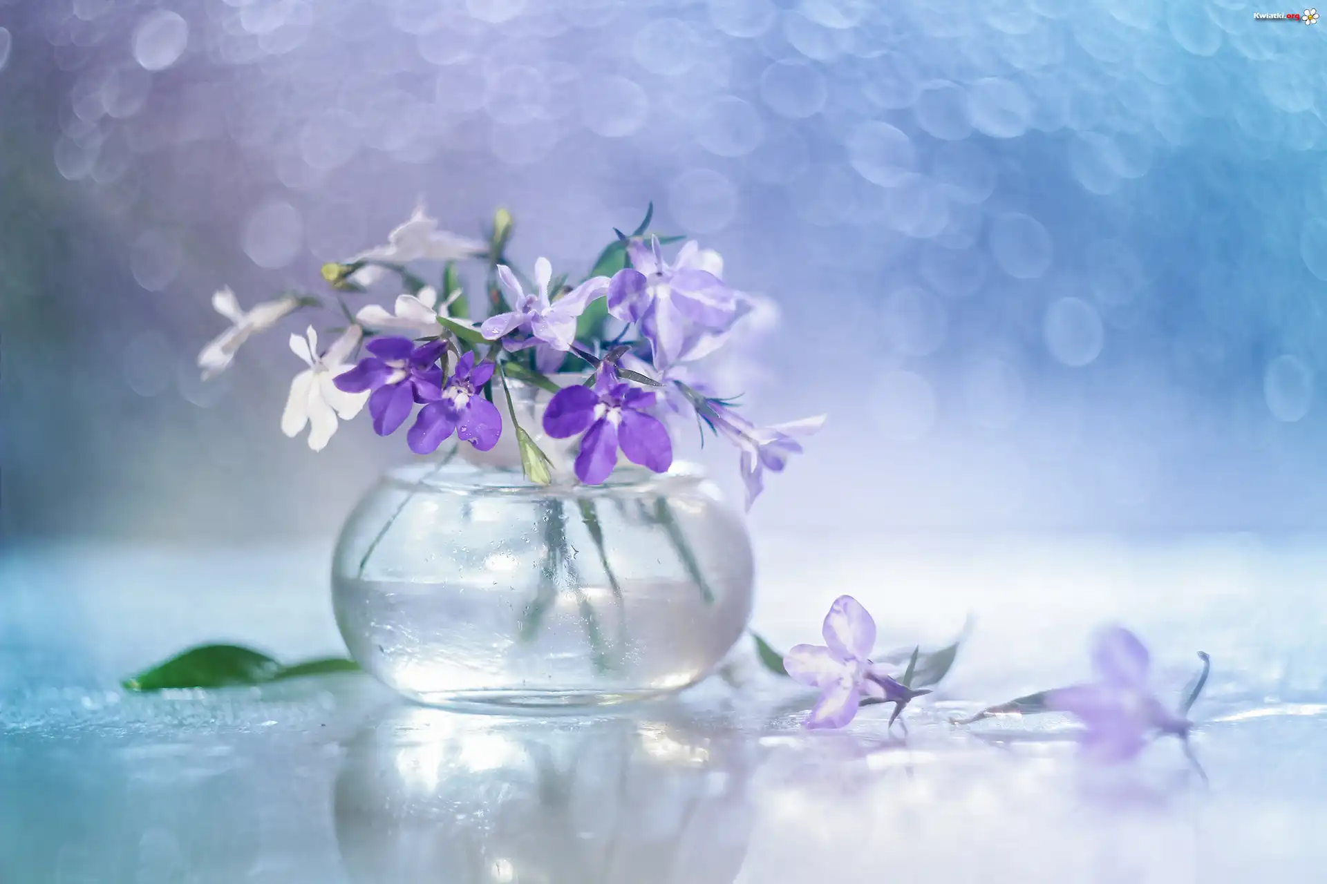 Kwiat Dekoracja, Lobelia, Kwiaty, Wazonik, Bokeh