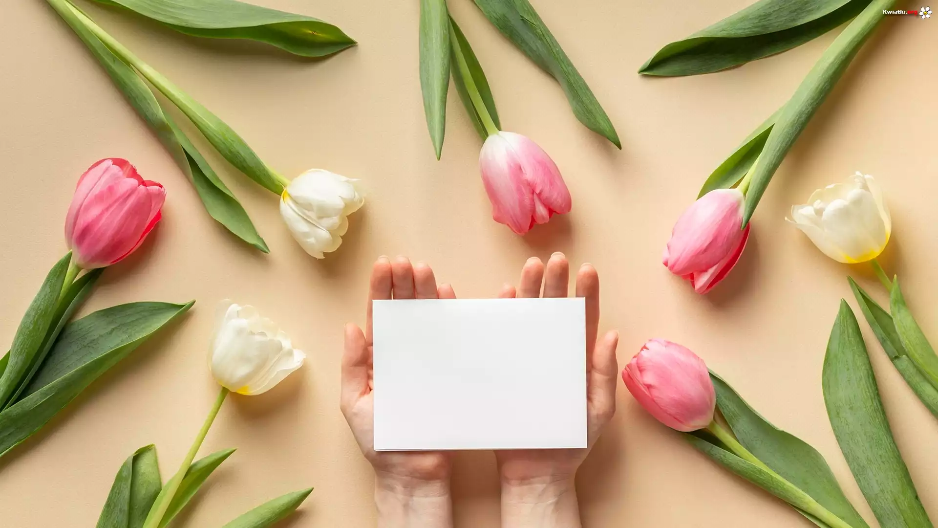 Tulipany, Dłonie, Kartka - Zdjęcia