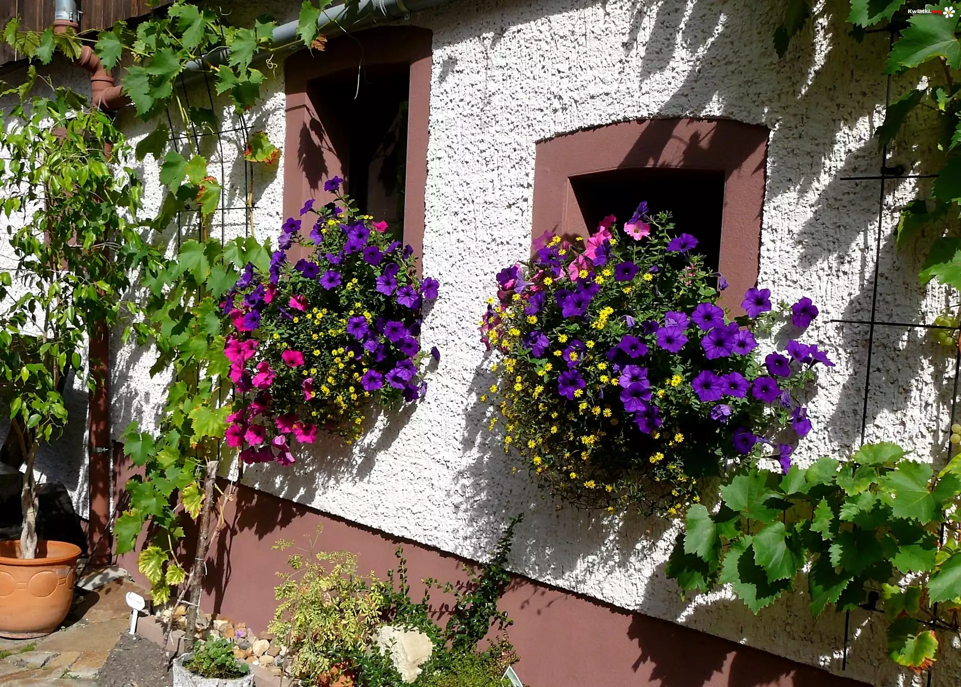 Dom, Ściana, Kwiaty, Petunie - Zdjęcia