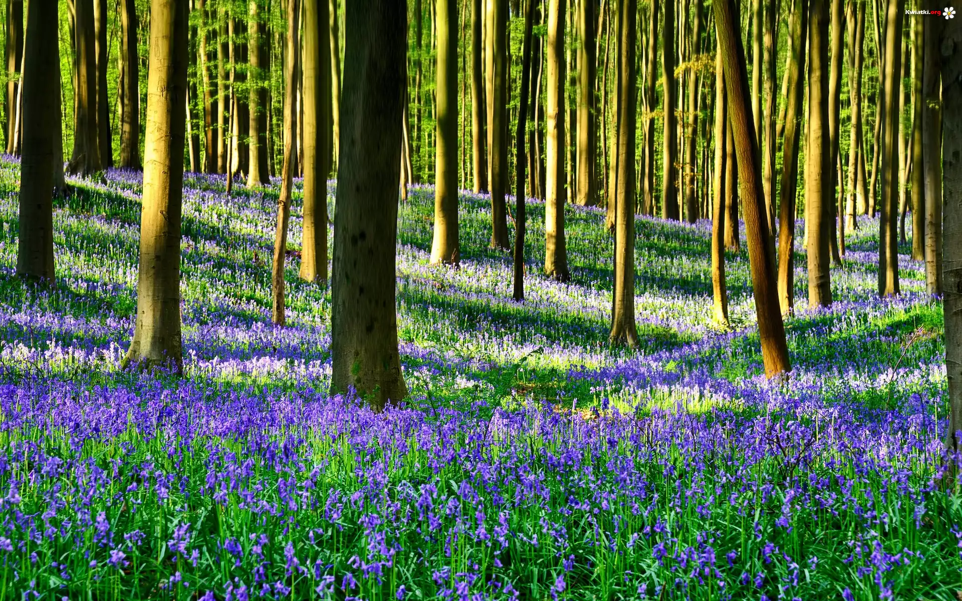 Las, Drzewa, Kwiaty, Dzwonki, Wiosna - Zdjęcia