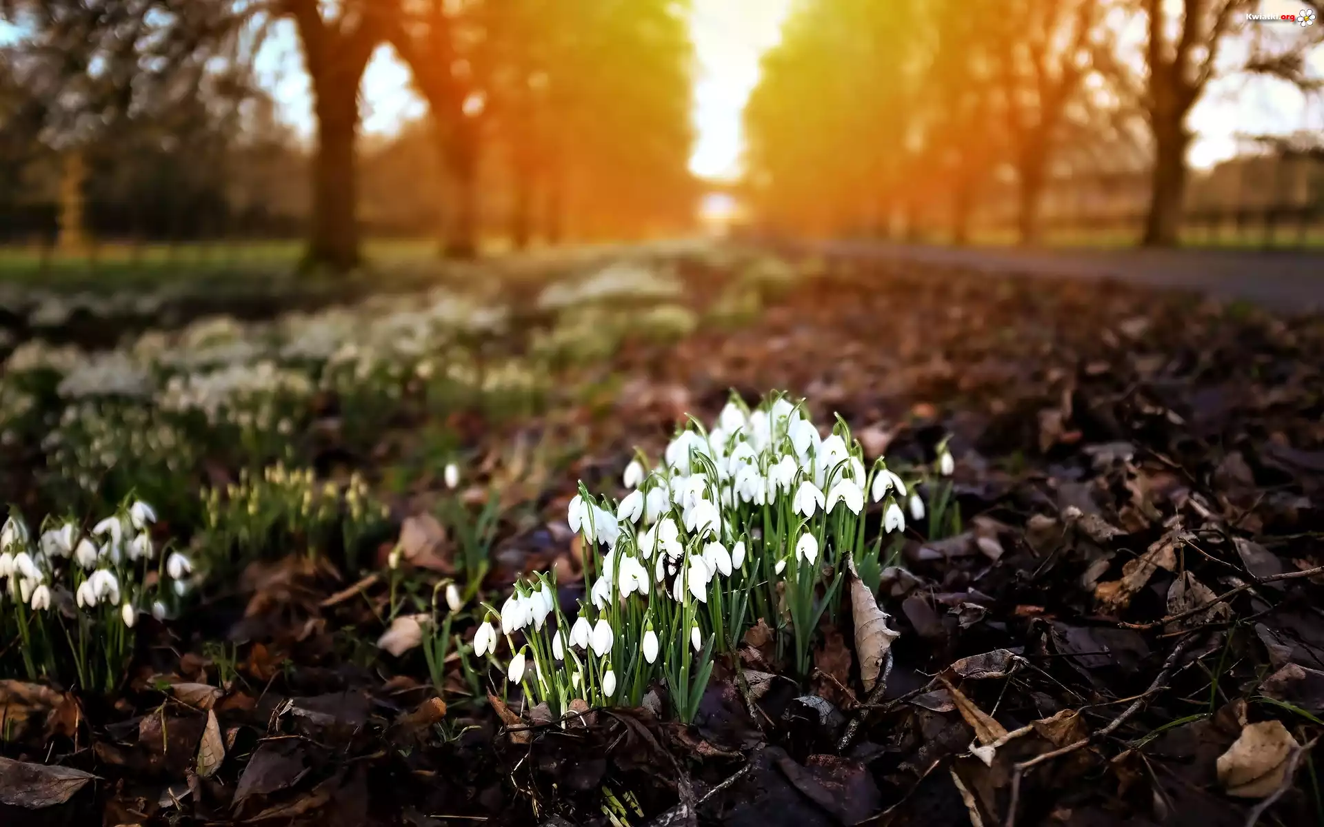 Kwiat Przebiśniegi, Drzewa, Słońce
