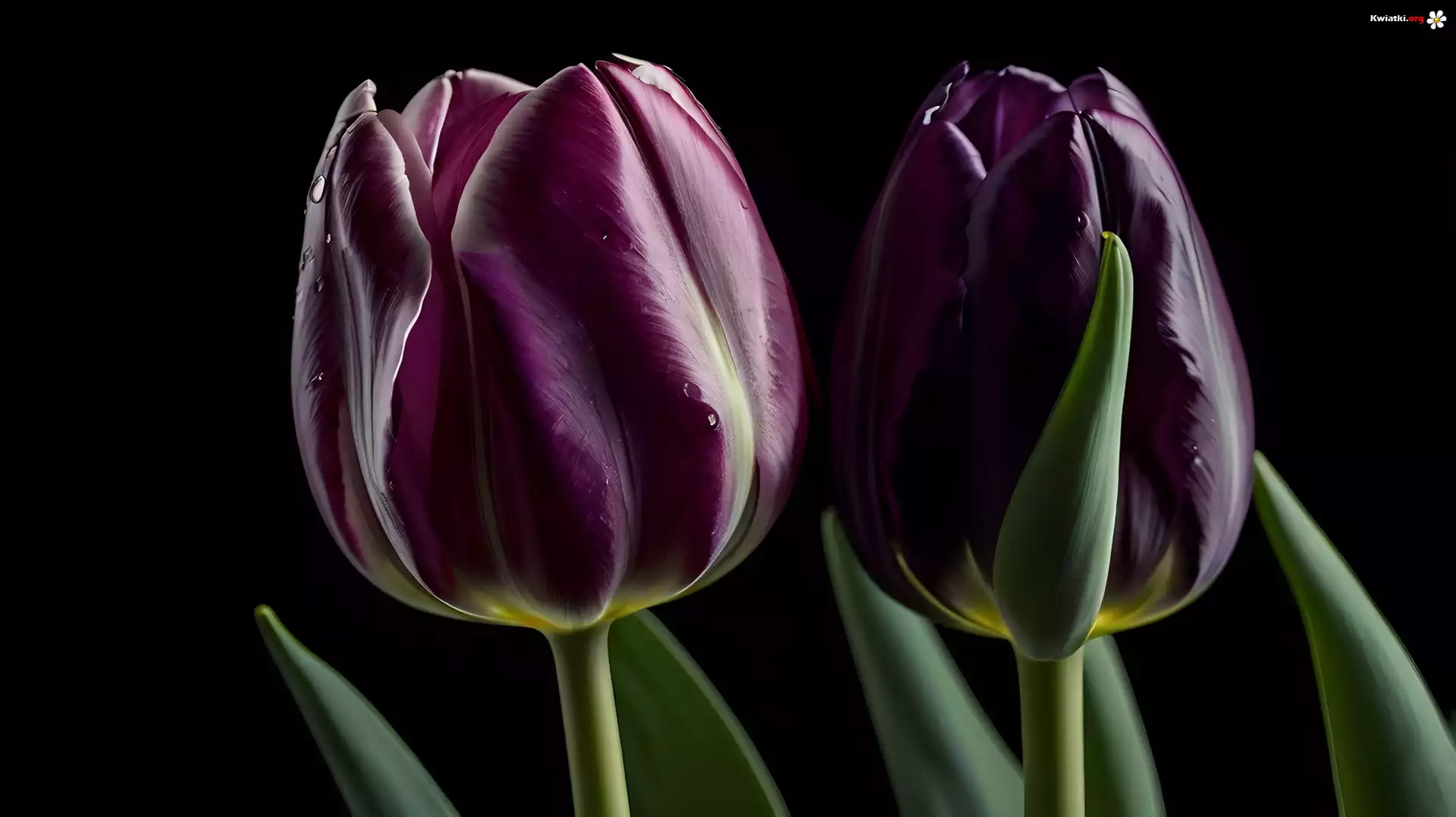 Tulipany, Dwa, Ciemnofioletowe, Tło, Grafika - Zdjęcia