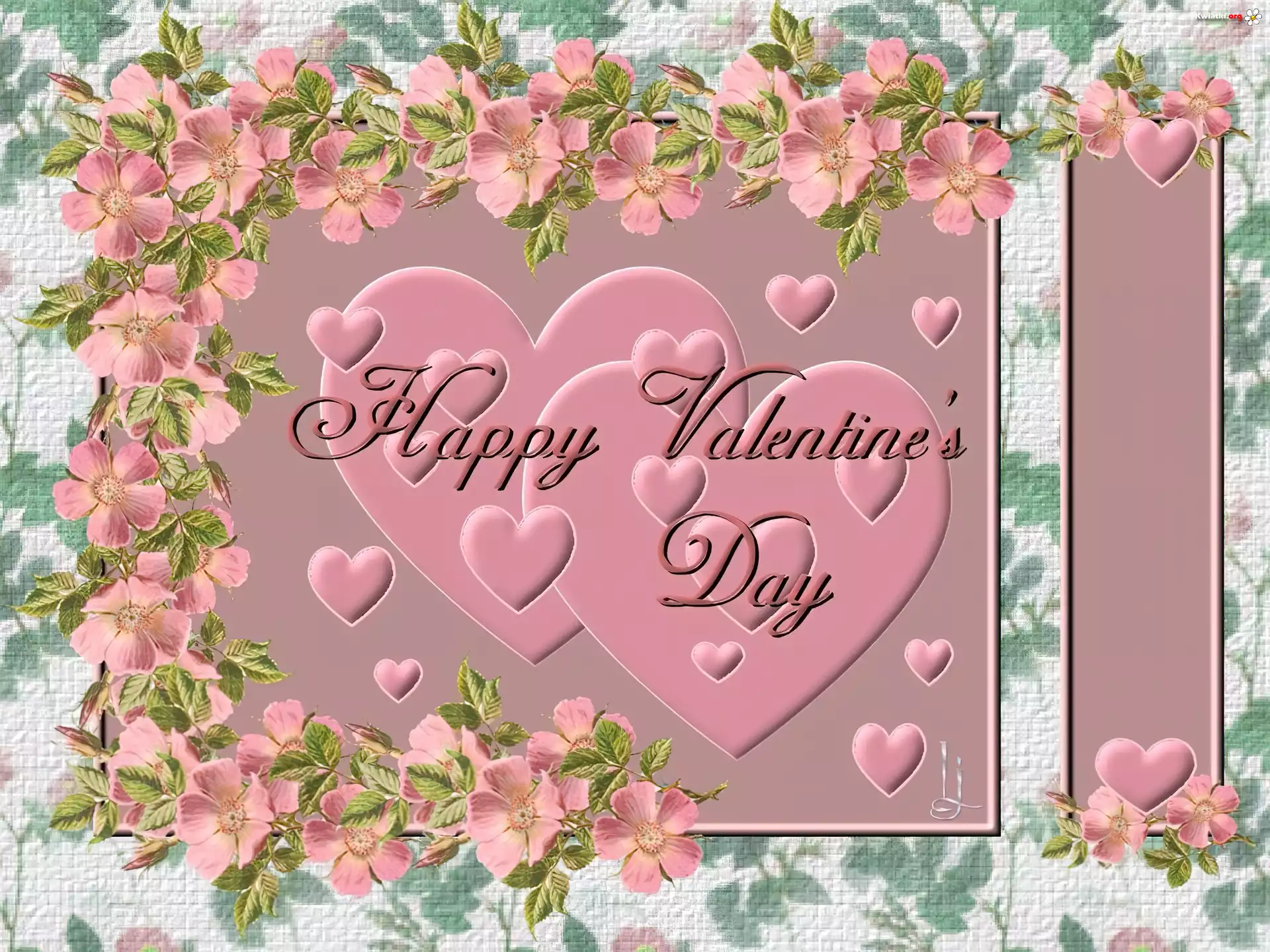 Dwa, Serduszka, Kwiatki, Ramka - Zdjęcia