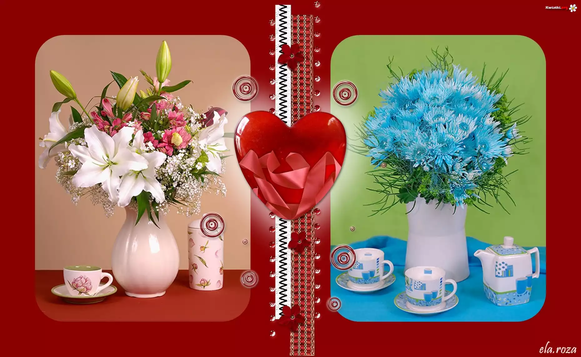 Kwiat Dwa, Obrazki, Kwiaty, W, Wazonie, Filiżanki