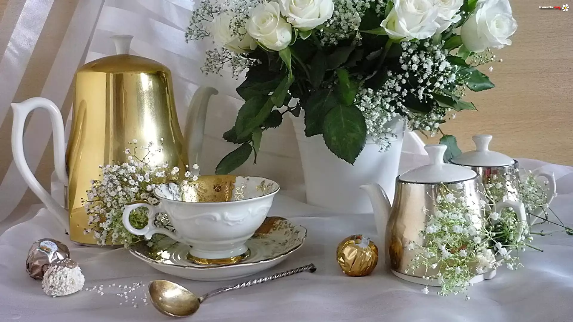 Kwiat Dzbanek, Filiżanka, Białe, Róże