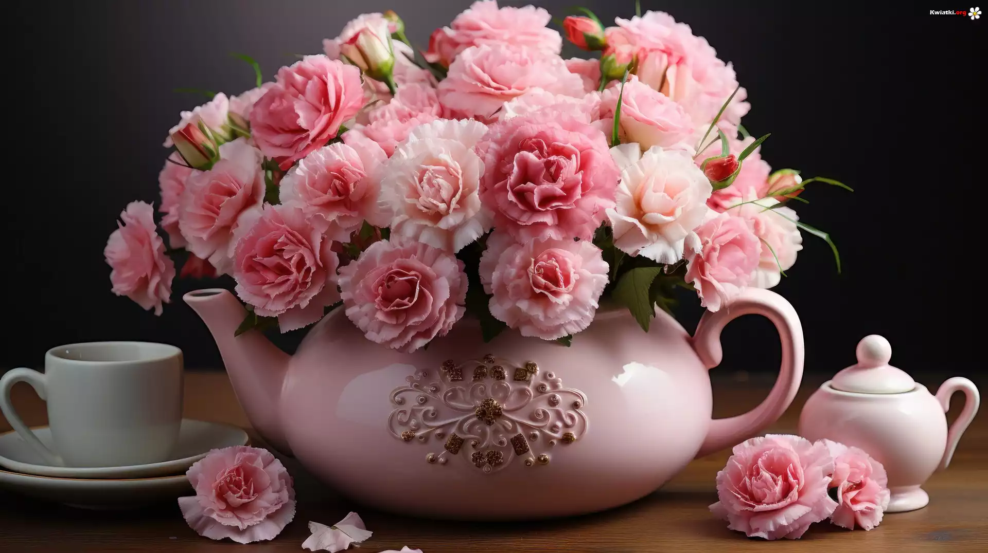 Goździki, Różowe, Kwiaty, Dzbanek, Imbryk, Grafika - Zdjęcia