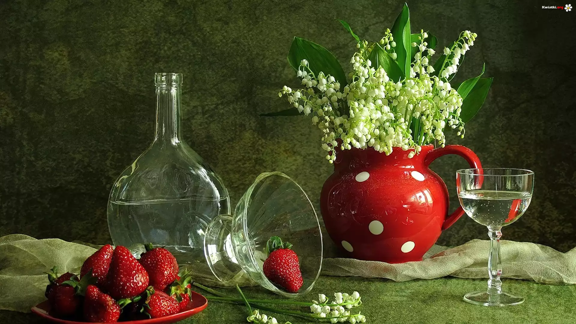 Kwiat Dzbanek, Konwalie, Szklane, Naczynia, Truskawki