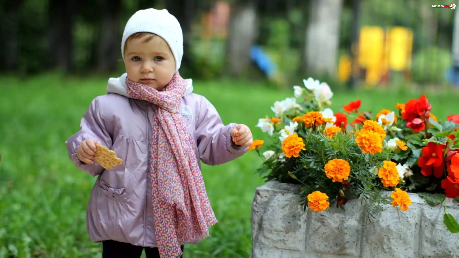 Dziewczynka, Szal, Czapka, Kwiaty, Aksamitki - Zdjęcia