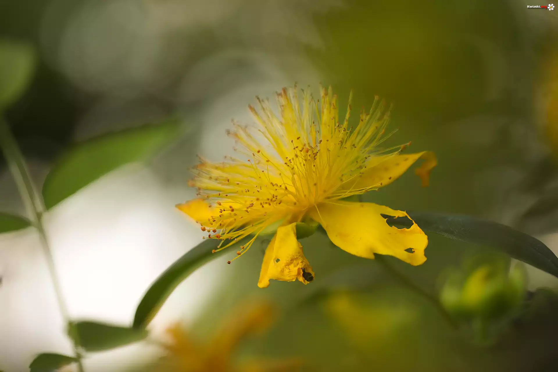 Kwiat Dziurawiec, Żółte, Kwiaty, Makro