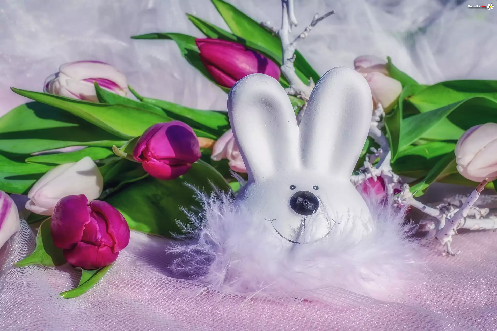 Kwiat Figurka, Zajączek, Pióra, Kwiaty, Tulipany