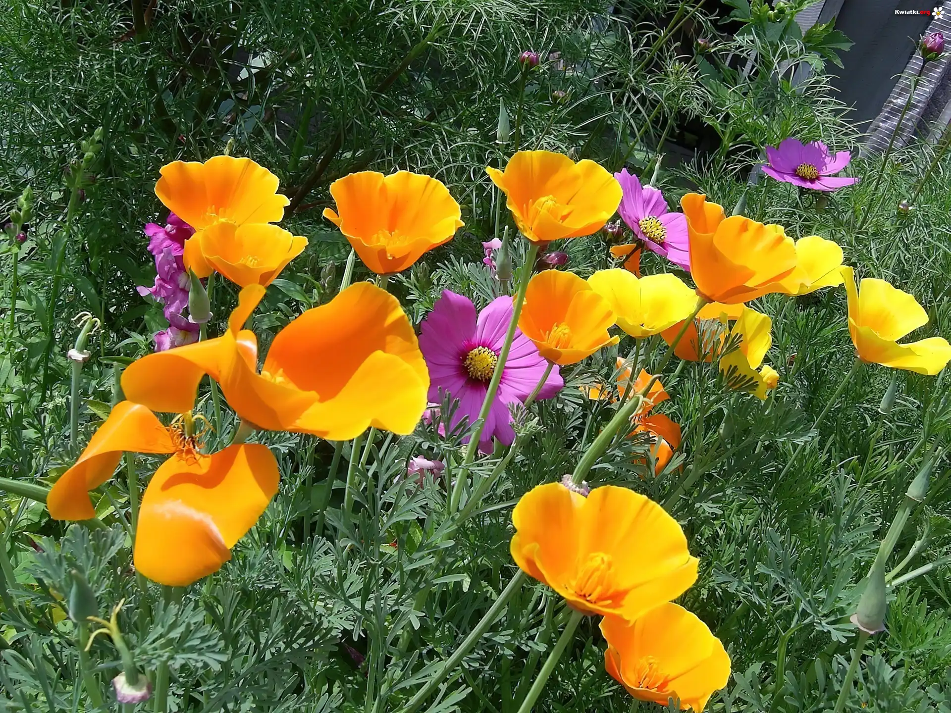 Fioletowa, Kosmea, Żółte, Kwiaty - Zdjęcia