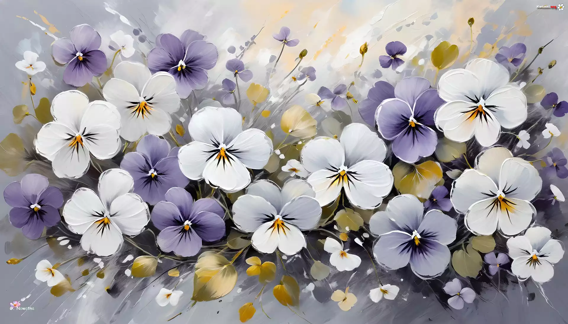 Białe, Fioletowe, Bratki, Kwiaty, Grafika - Zdjęcia