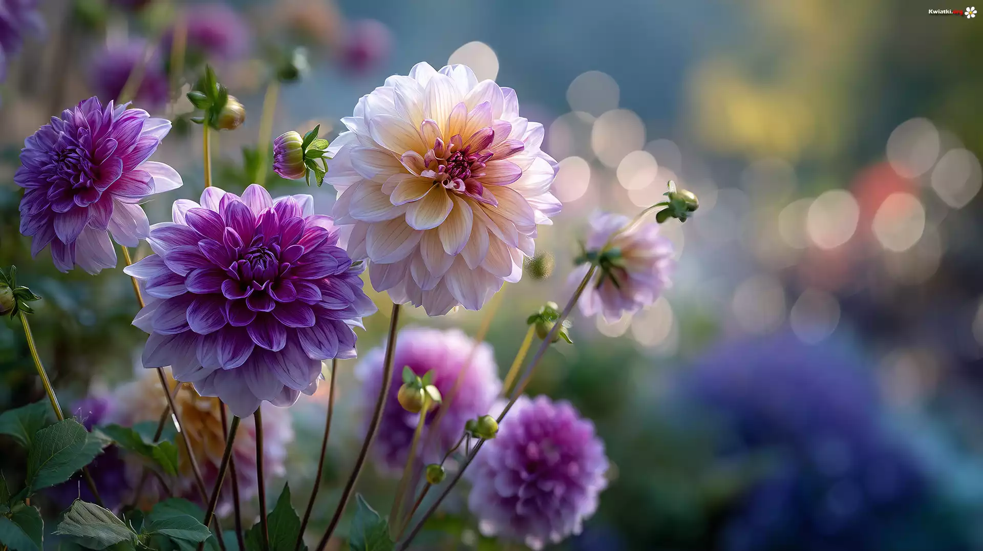 Różowe, Fioletowe, Dalie, Grafika AI - Zdjęcia