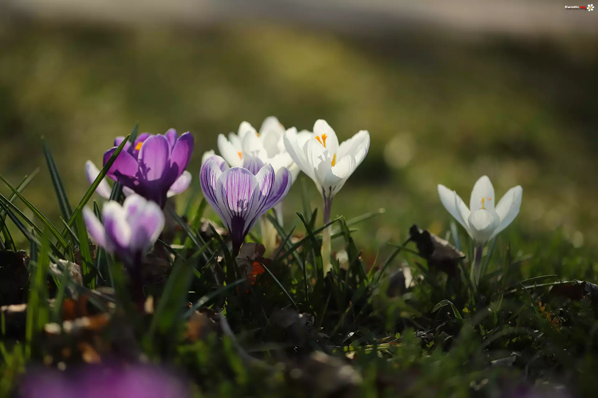 Kwiat Fioletowe, Białe, Krokusy, Kwiaty