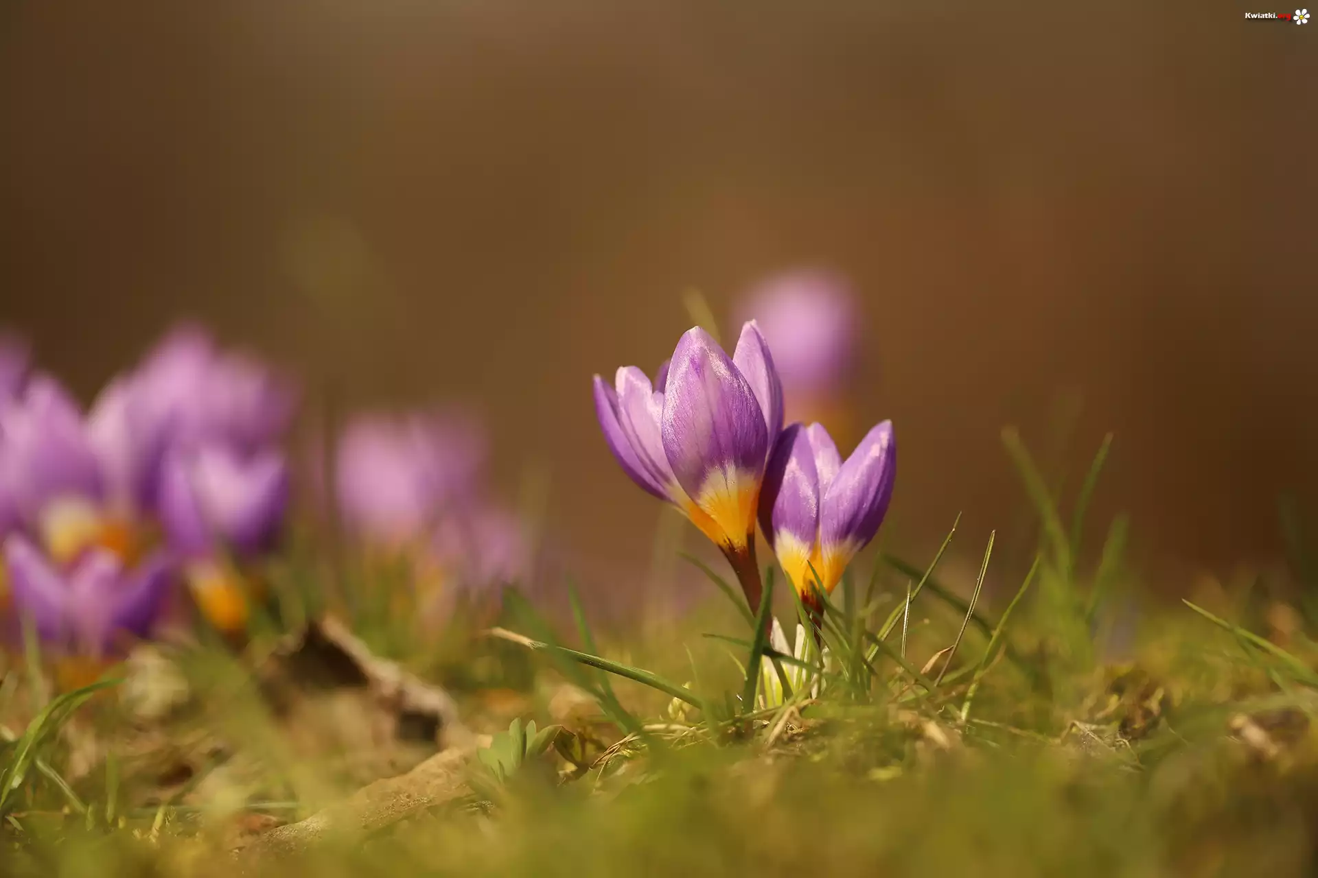 Kwiat Fioletowe, Dwa, Krokusy, Kwiaty