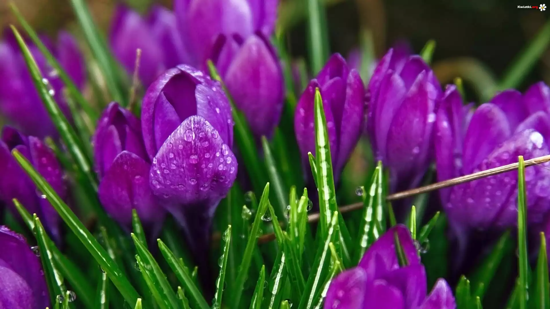 Fioletowe, Krokusy, Krople, Wody - Zdjęcia
