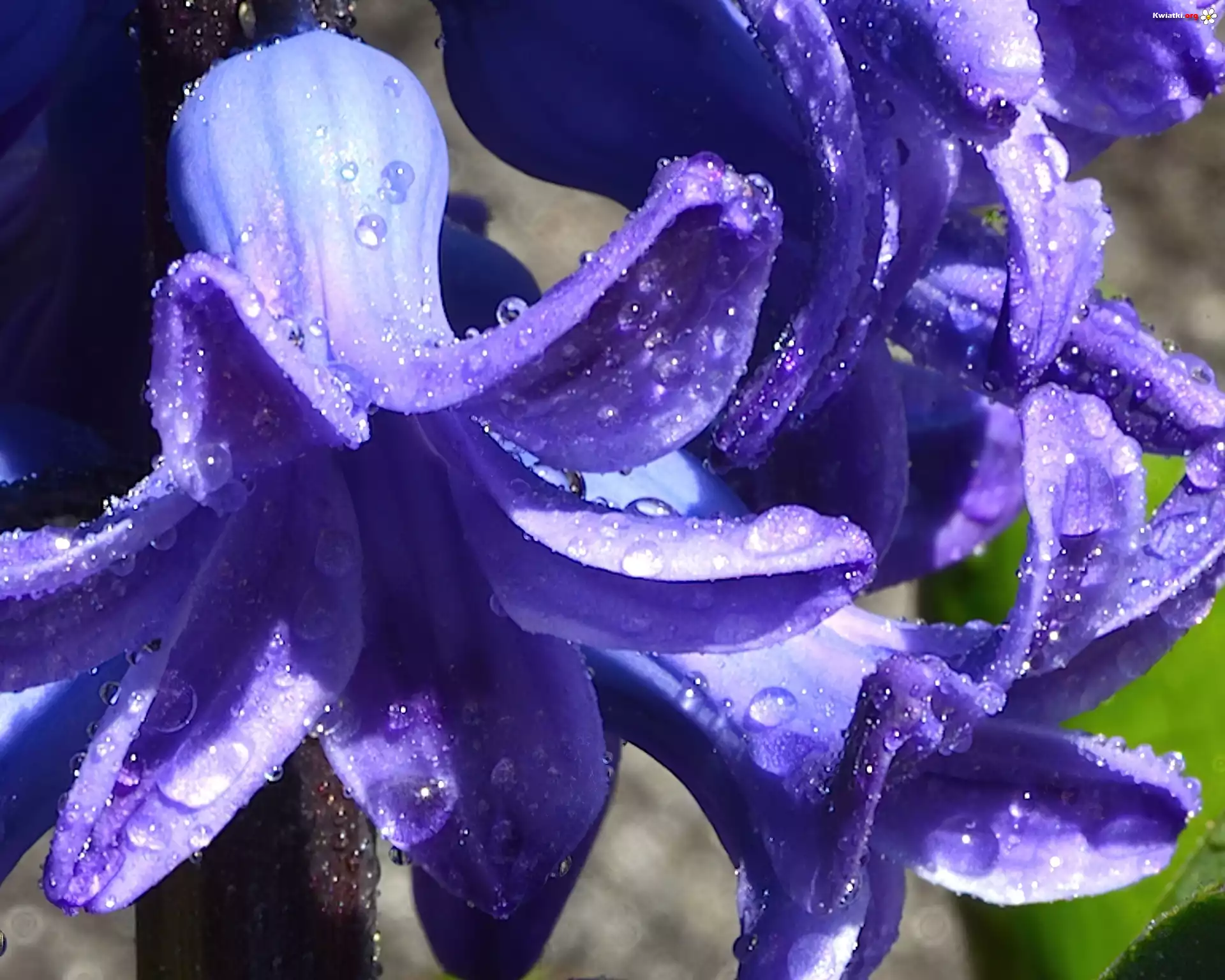 Fioletowe, Kwiaty, Krople, Wody, Hiacynt - Zdjęcia