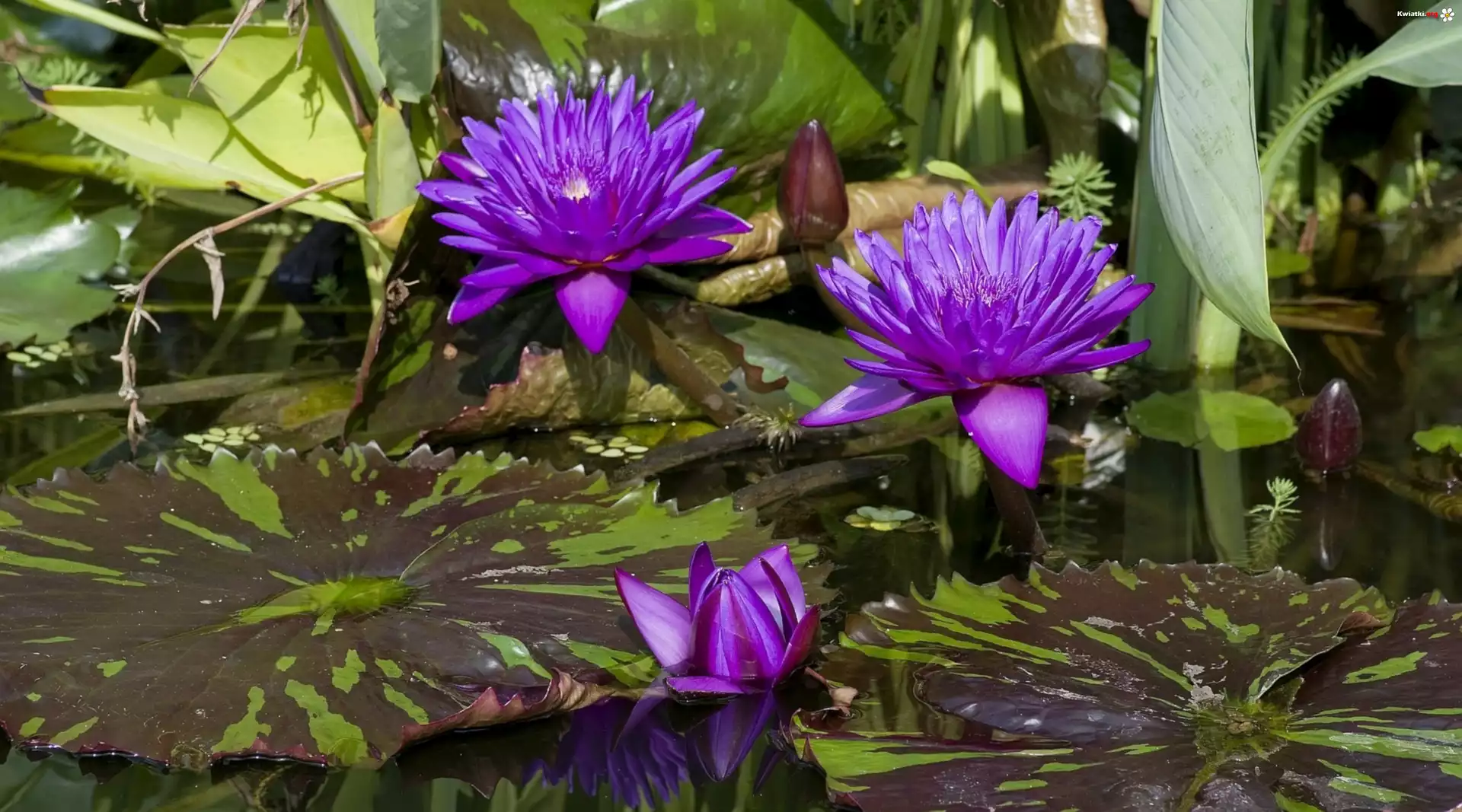 Fioletowe, Kwiaty, Lilie wodne - Zdjęcia