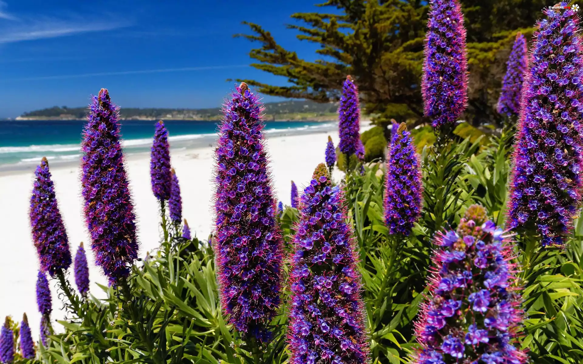 Kwiat Fioletowe, Kwiaty, Budleja, Morze, Plaża