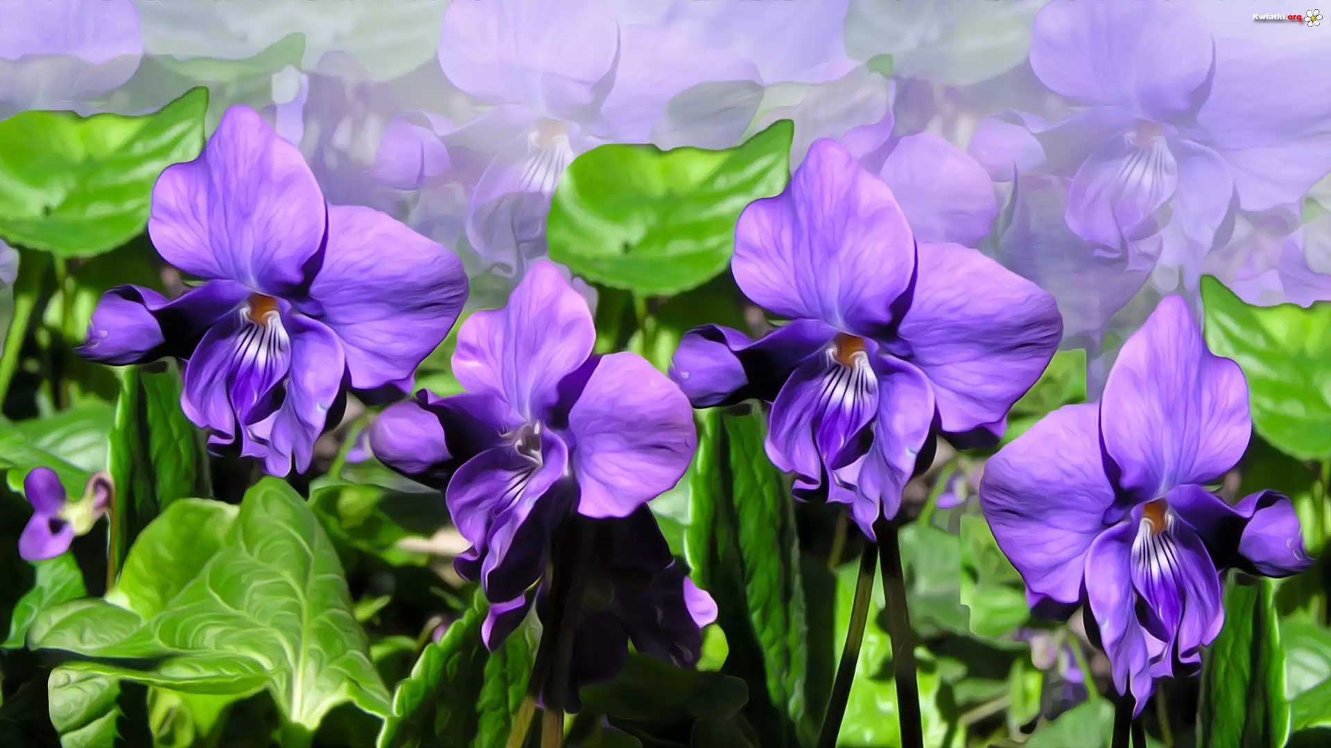 Fioletowe, Kwiaty, Fiołki wonne, Grafika - Zdjęcia