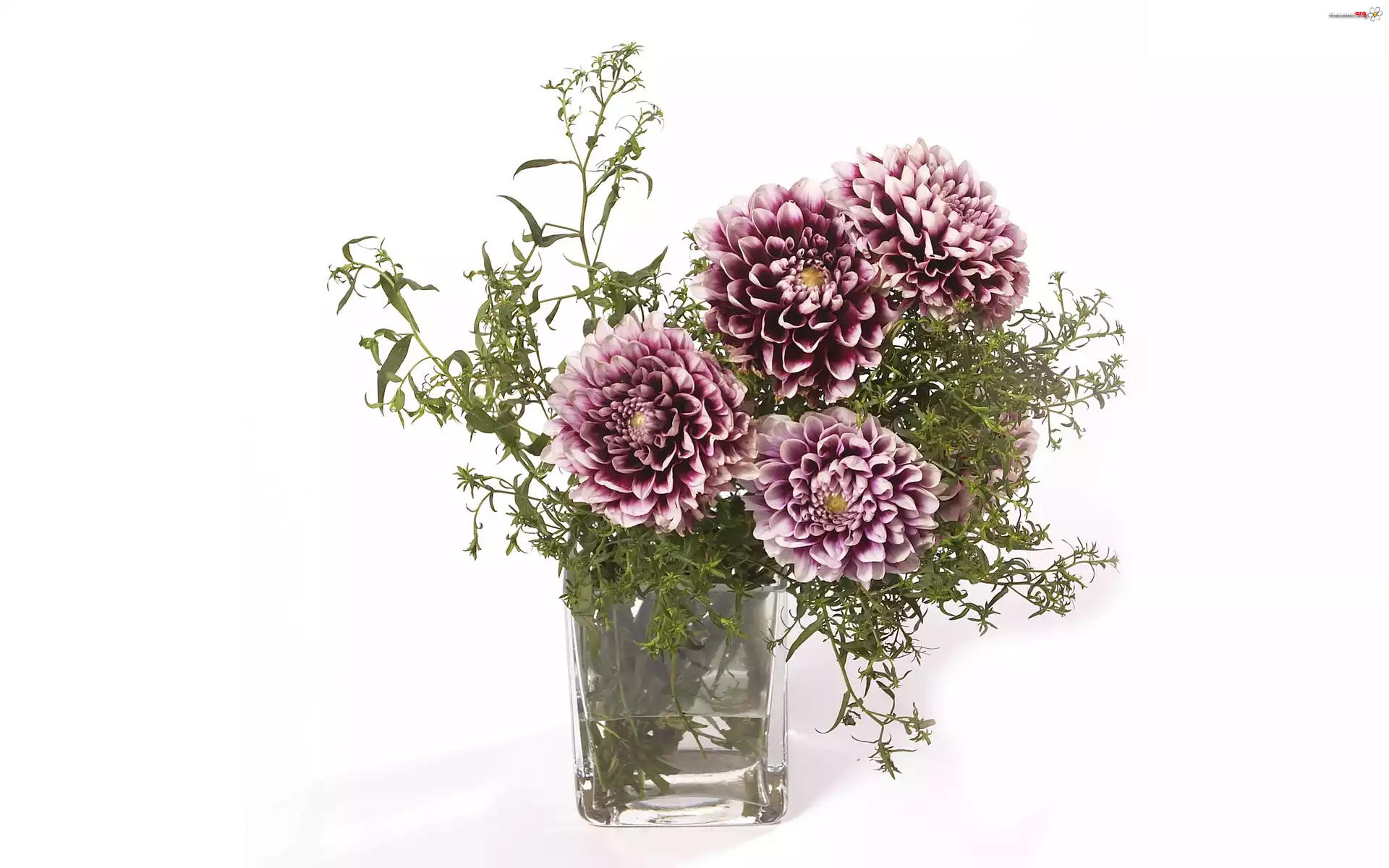 Fioletowo, Białe, Dalie, Wazon - Zdjęcia