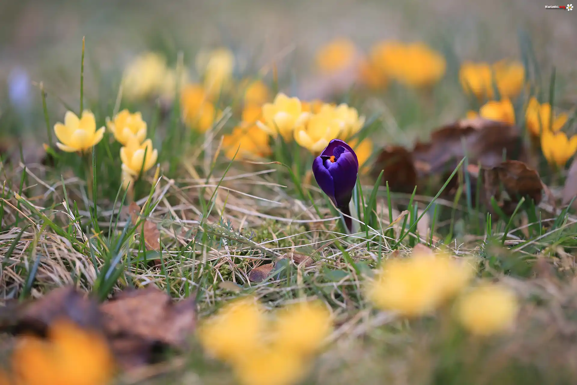 Kwiat Fioletowy, Pąk, Krokus, Trawa